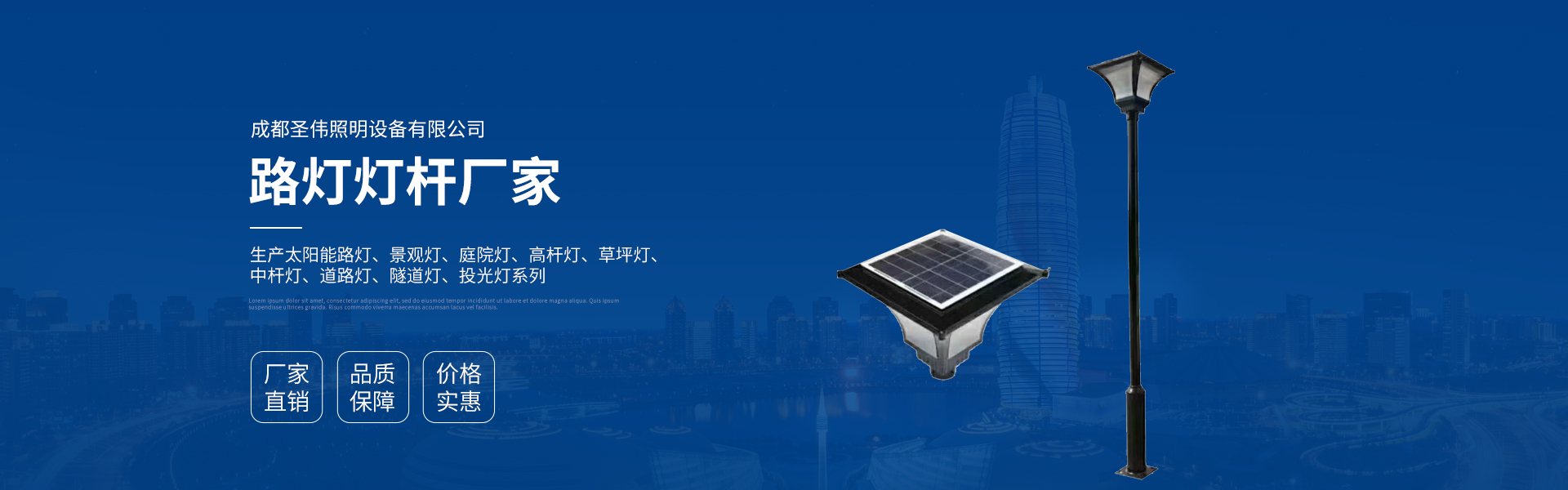 成都圣偉照明設(shè)備有限公司是一家集設(shè)計(jì)研發(fā)、生產(chǎn)制造和安裝服務(wù)融于一體的照明企業(yè),生產(chǎn)太陽能路燈、景觀燈、庭院燈、高桿燈、LED燈、草坪燈、中桿燈、道路燈、隧道燈、投光燈系列。我們以可靠的質(zhì)量,合理的價(jià)格,以及良好的售后服務(wù),深得各新老用戶的信賴。